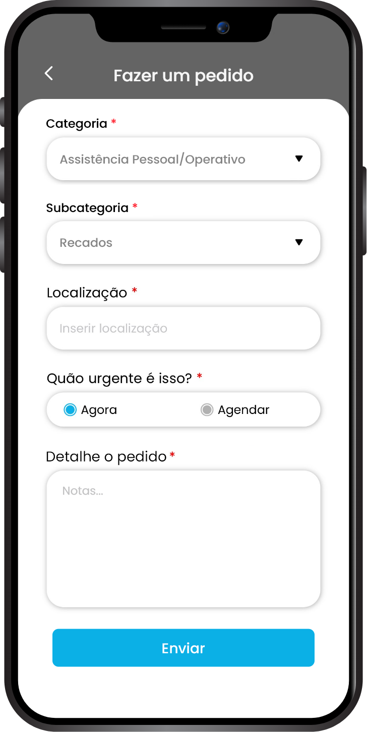 No nosso aplicativo, selecione a categoria da ajuda que precisa.