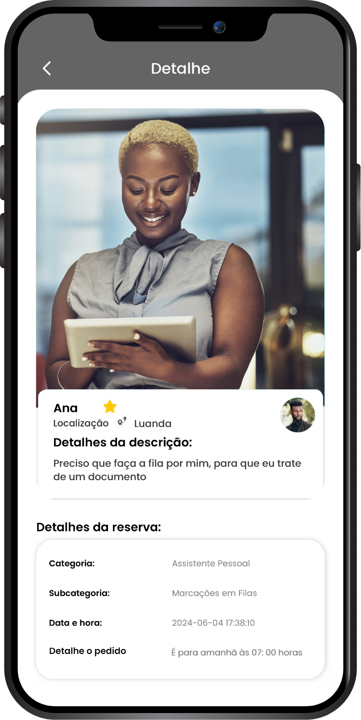 Selecione o seu Gigs Pro. O seu Gigs Pro chegará e fará o trabalho. Avalie a experiência e o resultado final no nosso aplicativo.
